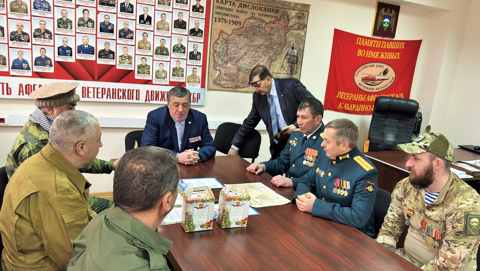 После проведения митинга с возложением цветов к памятнику «Воинам-интернационалистам, погибшим в Афганистане» и посещением Республиканской новогодней ёлки в офисе организации состоялся круглый стол на тему «Время героев» с участием депутатов Парламента КБР, членов Общественной палаты КБР, представителей Социального фонда КБР, членов Общественных советов профильных министерств и ведомств, руководителей и активистов ветеранских и молодёжных организаций КБР.