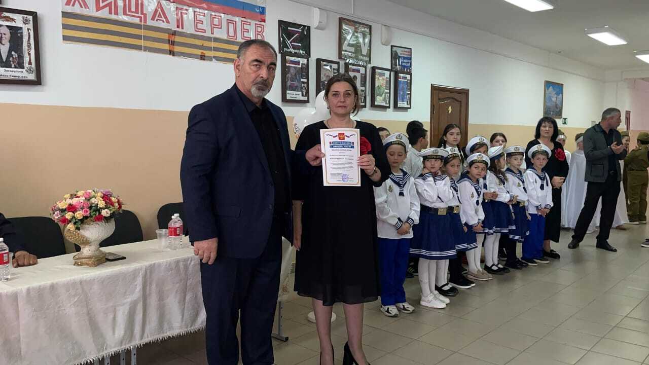 и. о. директора школы Боюнсузовой Т. А., заместителю директора по воспитательной работе Джантеевой Ф. В., педагогу-огранизатору Найманрвой Р. Ю., учителю географии Пазиной Н. М. и учителю русского языка и литературы Биджиевой М. А. за патриотическое воспитании молодёжи и за помощь в организации сбора гуманитарной помощи военнослужащим, находящимся в зоне СВО.