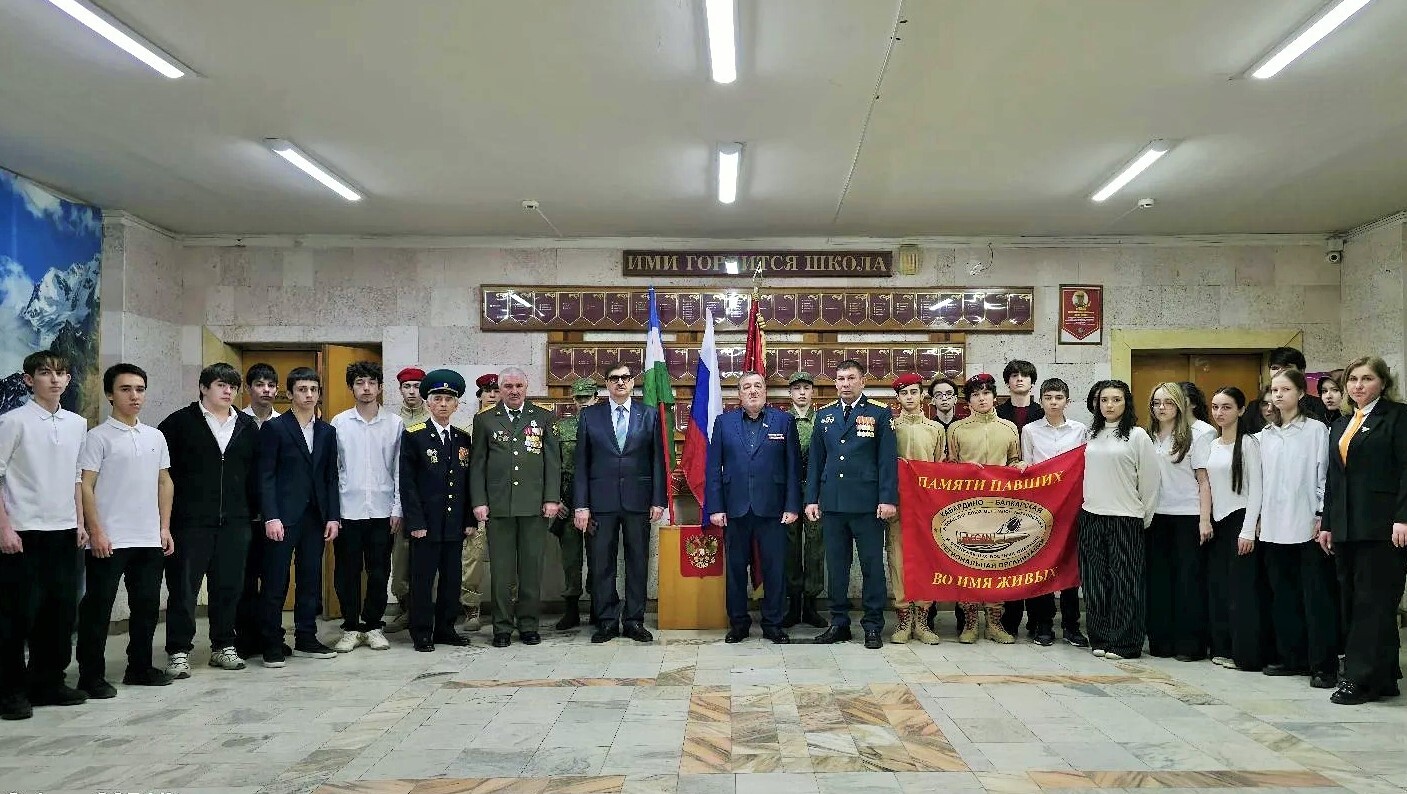 В мероприятии приняли участие депутат Парламента КБР, председатель КБРО «РСВА И СВО» Тимур Тхагалегов, член Общественной палаты КБР, председатель Исполкома КБРО «РСВА И СВО» Михаил Галушко, ветеран пограничной службы подполковник Владимир Сиволобов, председатель Нальчикского городского отделения КБРО «РСВА И СВО», участник СВО Эльдар Жансуев, ветеран Афганистана Билял Байсиев, а также учащиеся кадетского класса следственного комитета и юнармейцы школы.