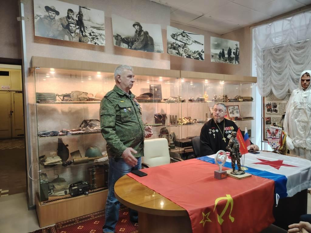 В музейной комнате «Боевой Славы» состоялась встреча членов ветеранской организации с учащимися 11 класса МБОУ СОШ № 9. Провели ее ветеран боевых действий в Чечне С.Г. Пальчик и участник специальной военной операции отец Дмитрий (Д.В. Быков).