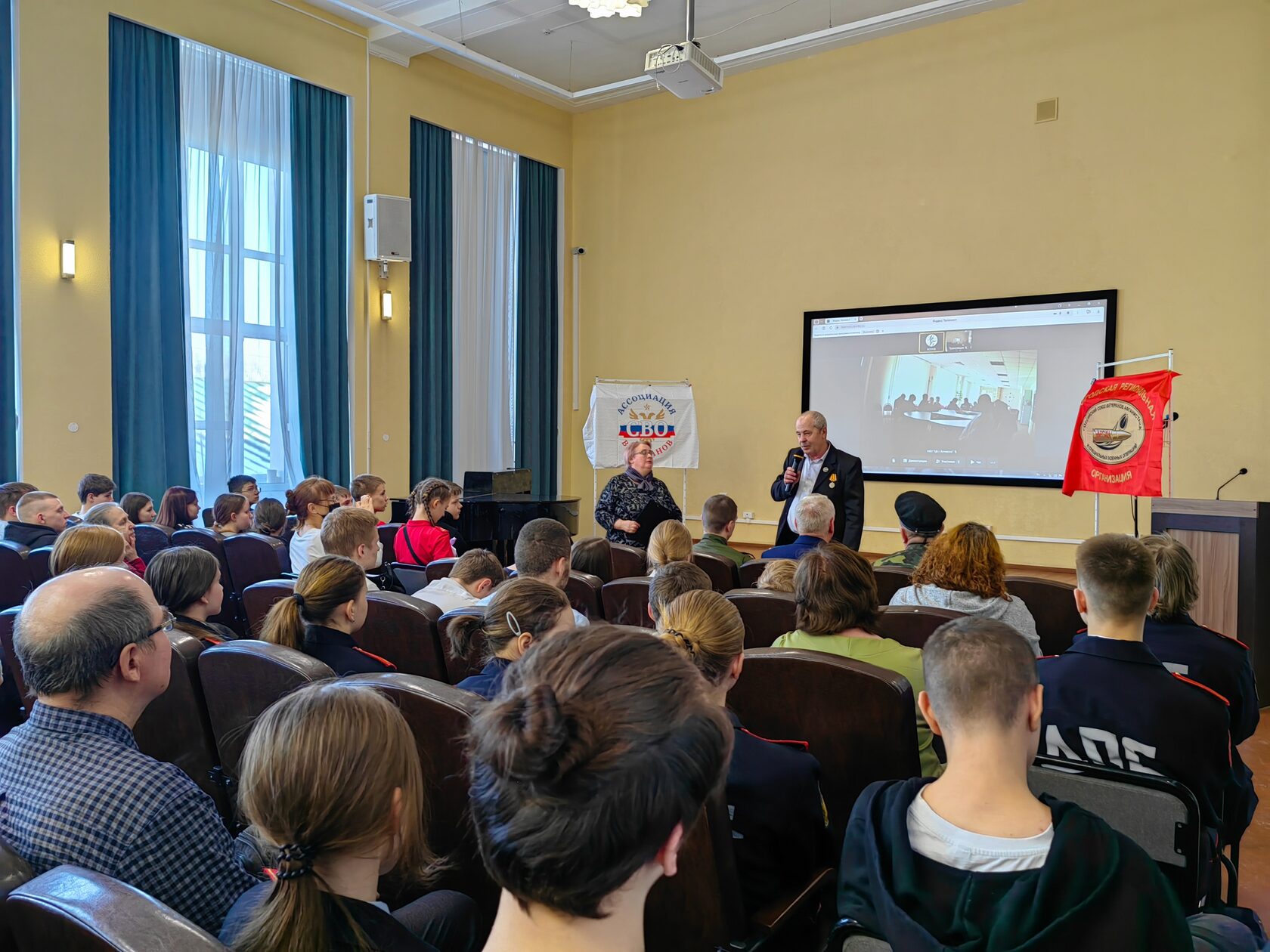 В Год защитника Отечества в России 25 февраля состоялась патриотическая встреча молодёжи с ветеранами боевых действий СВО, с представителями вологодской региональной организации Общероссийской общественной организации «Российский союз ветеранов Афганистана и специальных военных операций» под названием «Герои современной России». В мероприятии приняли онлайн-участие наши коллеги из Алчевска со школьниками.