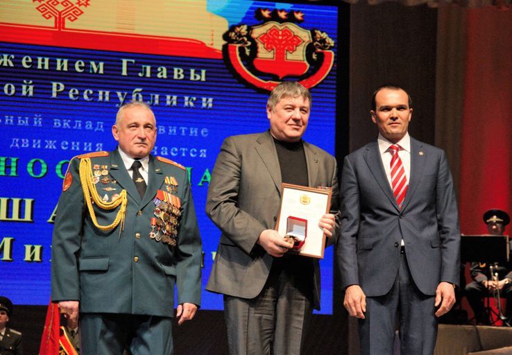 В рамках торжественной церемонии состоялось вручение государственных наград. За значительный вклад в развитие ветеранского движения, укрепление ветеранской дружбы, сотрудничества и взаимопомощи, за активное участие в деле патриотического воспитания молодежи Чувашской Республики был награжден Председатель Правления ЧРО РСВА, кавалер ордена Красной Звезды Кашаев И. М. именными часами с объявлением благодарности Главы Чувашской Республики.