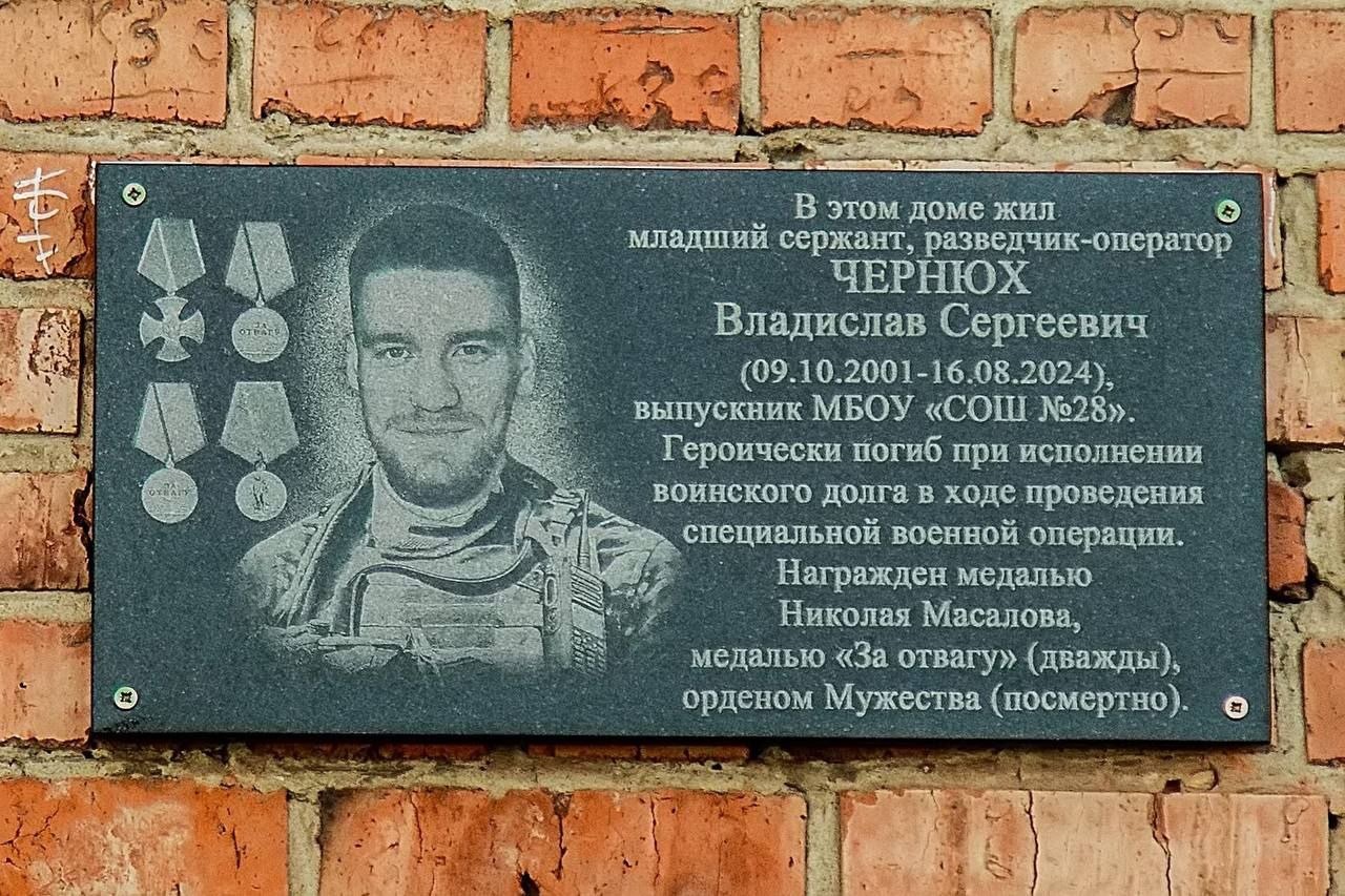 В городе Киселевске 21 июня 2025 года по инициативе ветеранов боевых действий и участников СВО Киселевского городского отделения ООО «Российский Союз ветеранов Афганистана и СВО» и при поддержке Администрации города состоялось торжественное открытие мемориальной доски в честь памяти героя специальной военной операции, выпускника школы №28, младшего сержанта Владислава Чернюх.