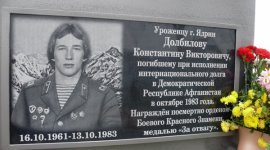 Уроженец Ядрина, выполнявший воинский долг в Афганистане, навсегда остался в памяти его товарищей по оружию, их семей и близких, друзей и жителей города. Митинг у памятника павшим воинам-«афганцам» открыл председатель совета ветеранов ВДВ А. Тепляков. Перед собравшимися выступили глава администрации городского поселения В. Шуверов, председатель Ядринского отделения ЧРОООО «Российский союз ветеранов Афганистана» С. Михеев и рассказали о подвиге Константина Долбилова, который в бою, будучи раненым, продолжал передавать по радиостанции приказы командира роты. Когда он заметил группу противника, обходящую с фланга наших солдат, с двумя разведчиками подавил ее огнем из автомата, но сам при этом был смертельно ранен… За всю историю Вооруженных сил СССР наш земляк единственный из рядового состава, который за свой подвиг награжден офицерским орденом Боевого Красного Знамени и медалью «За отвагу».