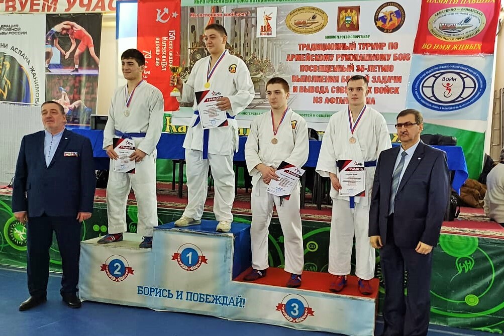 Региональная организация Российского союза ветеранов Афганистана и специальных военных операций совместно с Федерацией амейского рукопашного боя КБР провели традиционный республиканский турнир по армейскому рукопашному бою, посвящённый 36-й годовщине вывода советских войск из Афганистана и 80-летию Великой Победы.
