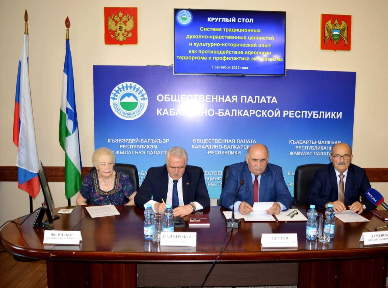 В Общественной палате КБР состоялся круглый стол на тему «Система традиционных духовно-нравственных ценностей и культурно-исторический опыт как противодействие идеологии терроризма и профилактика экстремизма», посвященный Дню солидарности в борьбе с терроризмом.