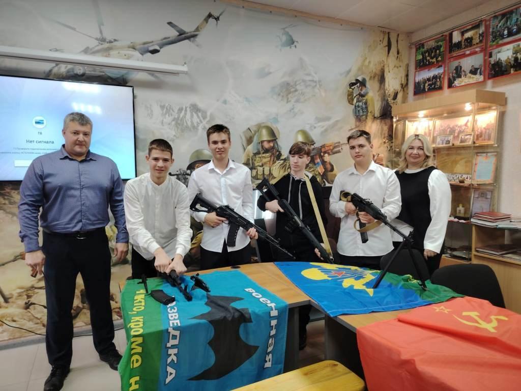 Подполковник Измайлов поделился с ребятами своим творчеством – стихами и отрывками из прозы. В качестве подарка и будущего экспоната музея СВО он подарил комнате «Боевой Славы» фронтового чебурашку, свои рассказы, шеврон с фронта и письмо школьницы 3 класса г. Мичуринска Насти, которое носил в своем бронежилете всю командировку на СВО.