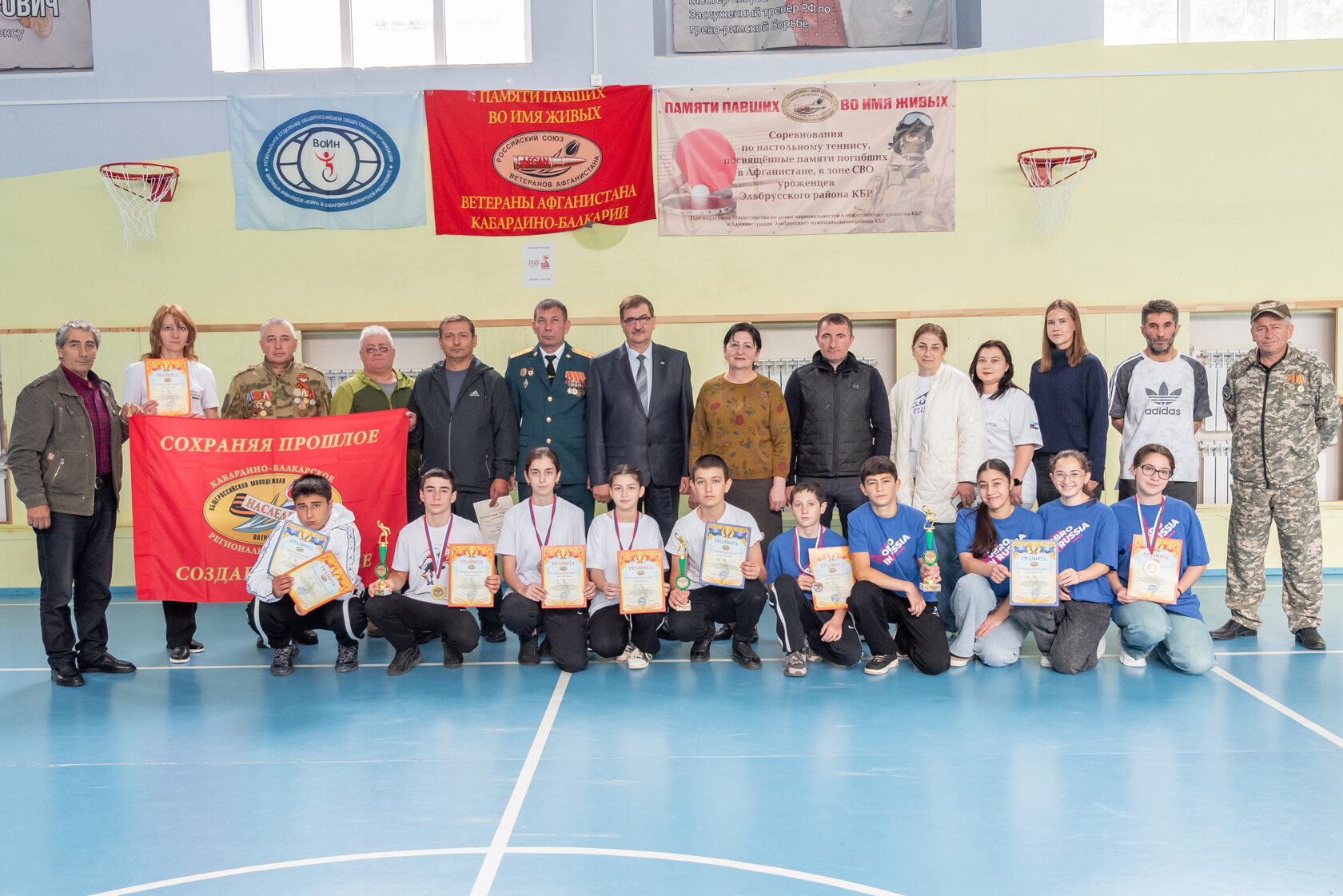 Кабардино-Балкарская региональная организация Общероссийской общественной организации «Российский союз ветеранов Афганистана и специальных военных операций» (КБРО «РСВА И СВО»), при поддержкеАдминистрации Эльбрусского муниципального района КБР, КБРО ВИ «ВоИн» и молодёжно-патриотической организации «НАСЛЕДИЕ» провели 13 сентября 2025 года в МОУ «СОШ №3 им. братьев Этезовых» г. Тырныаузасоревнования по настольному теннису среди команд образовательных учреждений Эльбрусского района КБР, посвящённые памяти погибших в Афганистане, в СВО и других военных конфликтах уроженцев КБР.